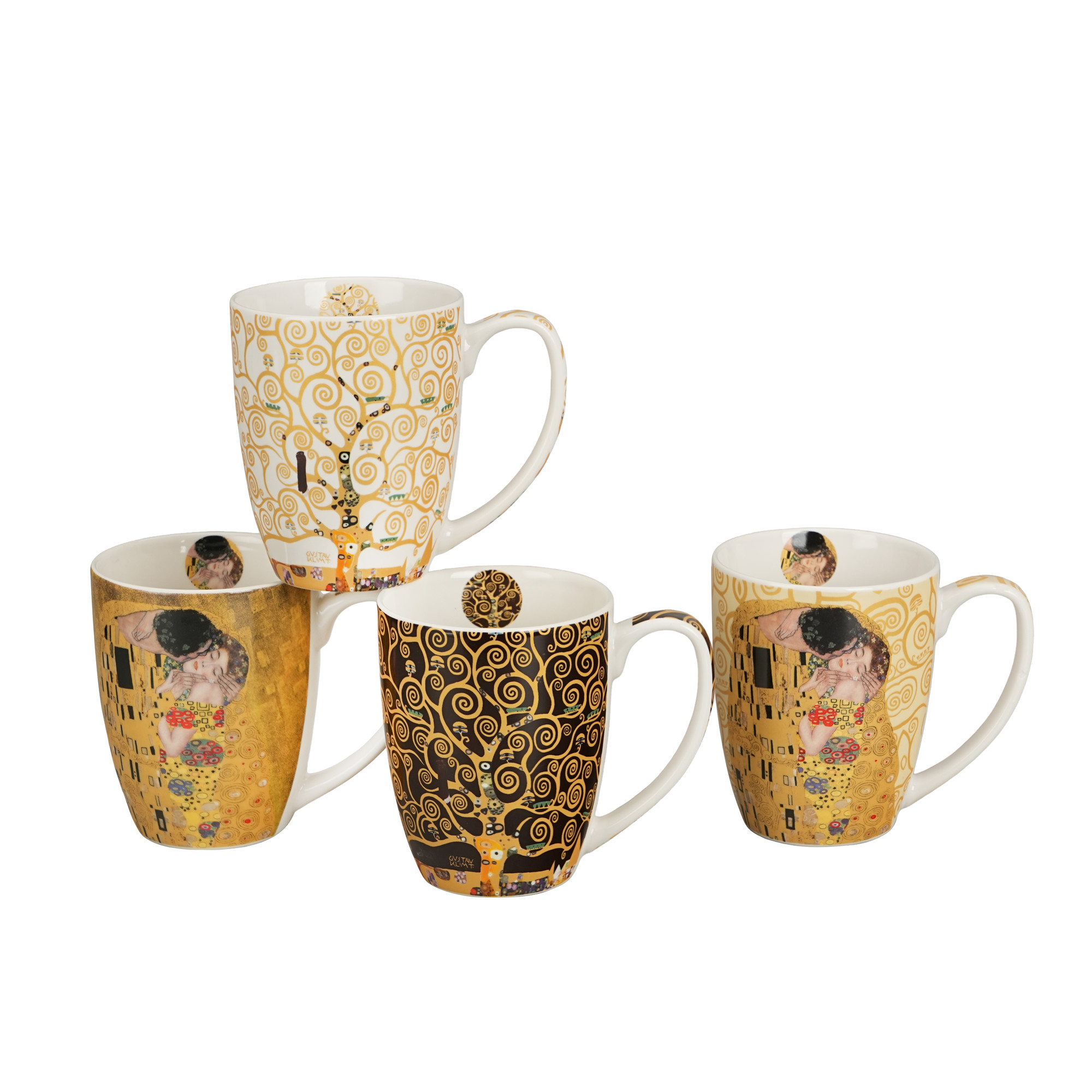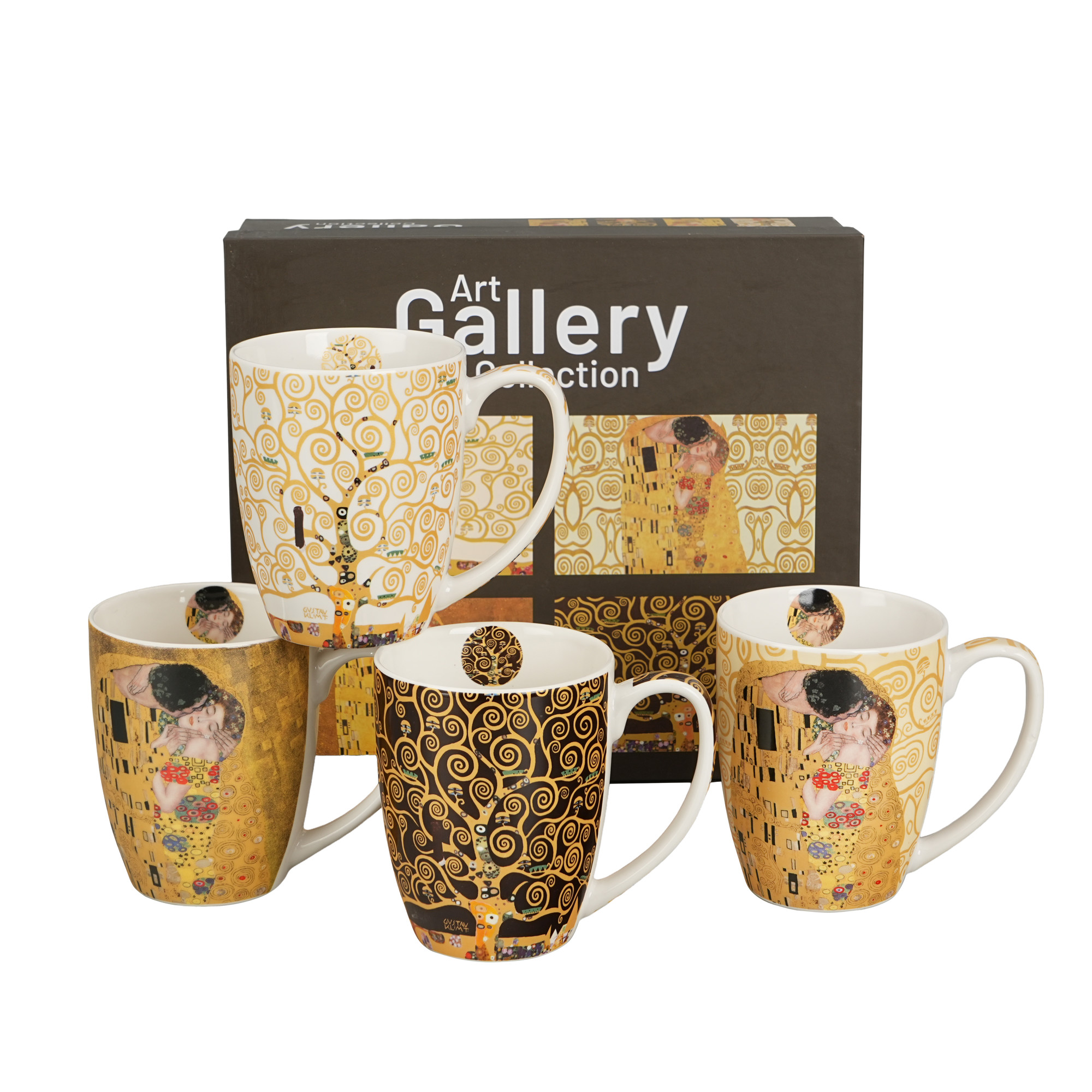 Četru krūžu komplekts Inspired by Gustav Klimt no kolekcijas Art Gallery izgatavots no augstas kvalitātes New Bone China porcelāna ar maigi krēmīgu toni, vieglu spīdumu un izturību.