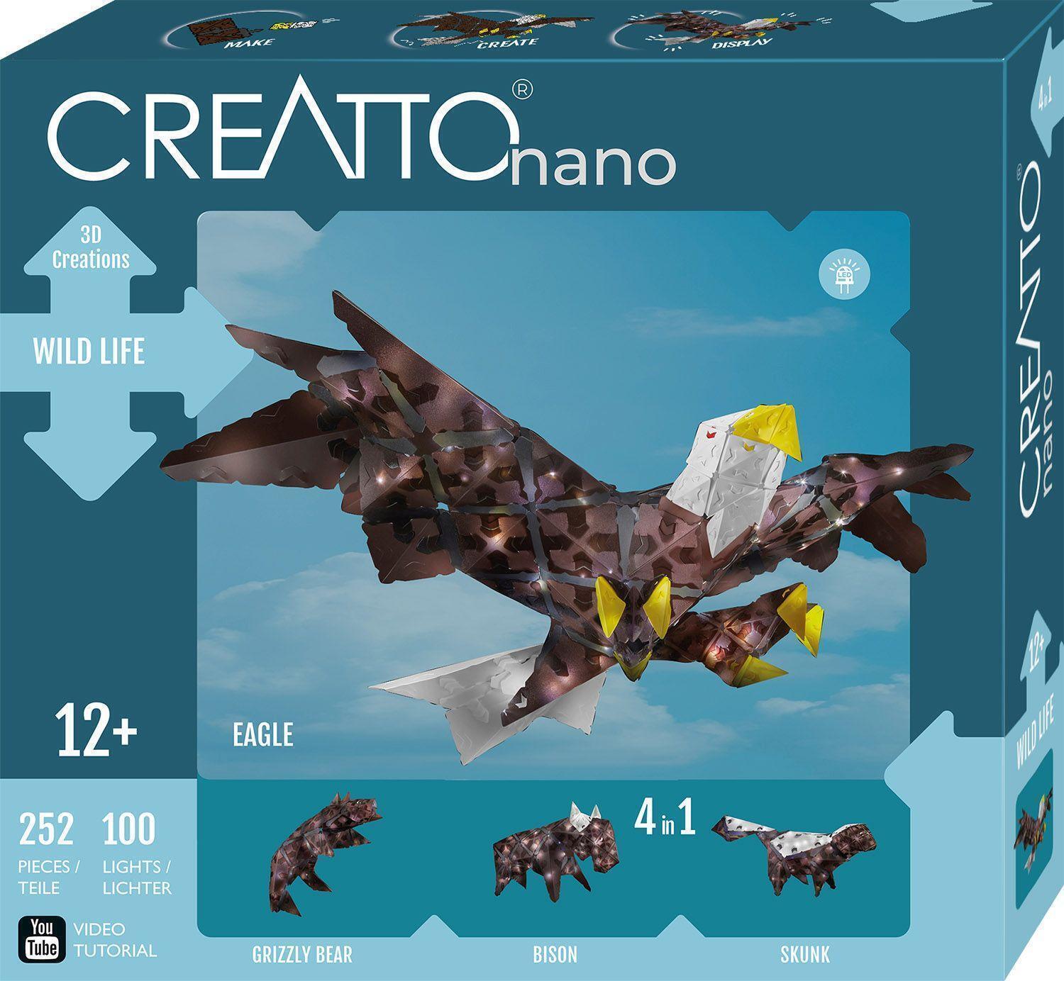 Creatto - vienkārša, bet universāla sistēma, kurā ir tikai divi galvenie komponenti, kurus var apvienot bezgalīgos 3D veidojumos. Izturīgās un elastīgās plastmasas detaļas ir ātri un viegli savienojamas visos prasmju līmeņos; nav nepieciešami papildu materiāli vai aprīkojums! Katram Creatto komplektam ir instrukcijas četru dažādu konfigurāciju izveidošanai, taču iespējas ierobežo tikai jūsu iztēle. Pievienojiet krāsainas gaismas diodes, lai izgaismotu jūsu mākslas darbu no iekšpuses.