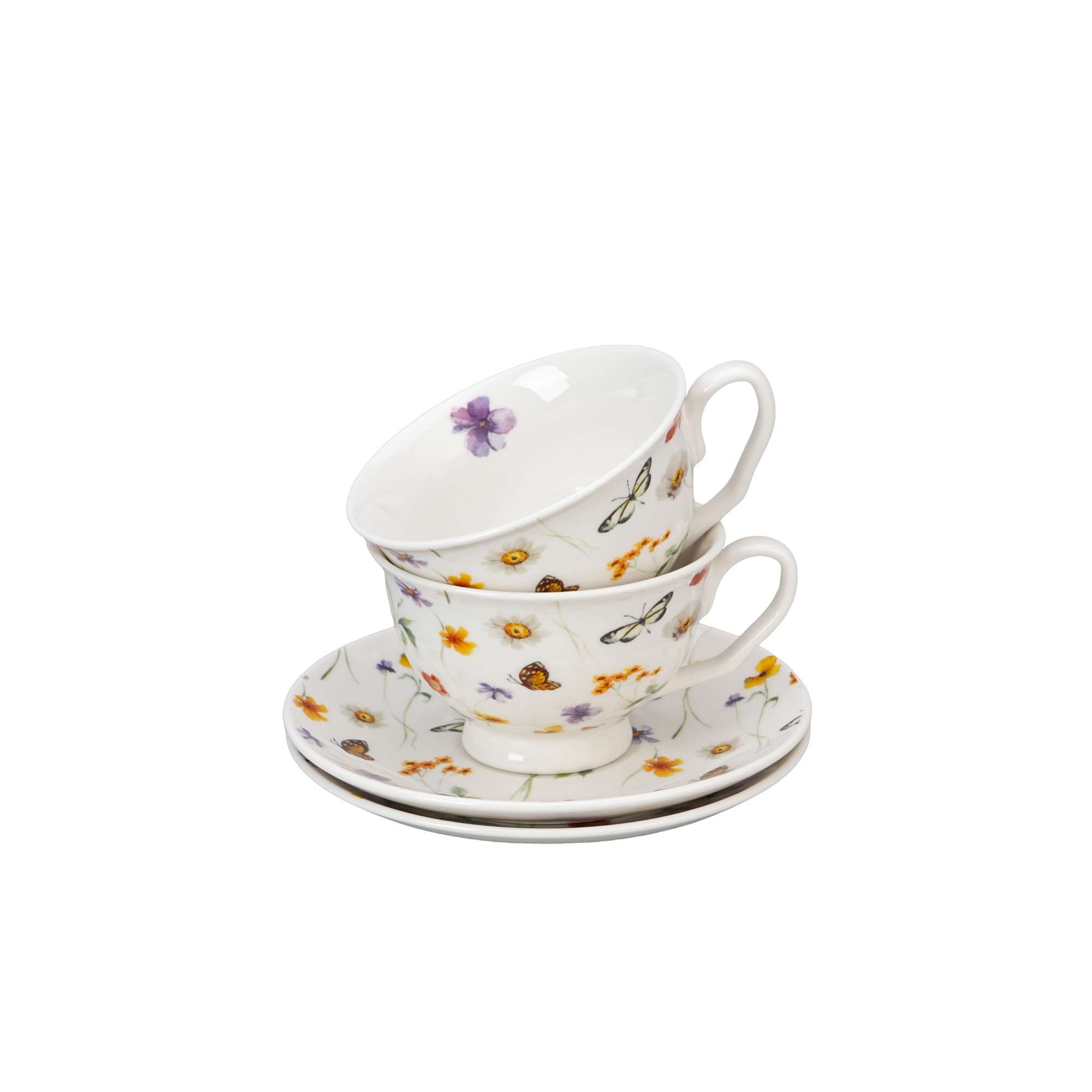 Tasītes rotā maigs dabas motīvs – krāsaini tauriņi starp smalkiem pļavas ziediem. Siltie, pasteļtoņi rada harmonisku un mierpilnu noskaņu, piešķirot traukiem īpašu smalkumu.