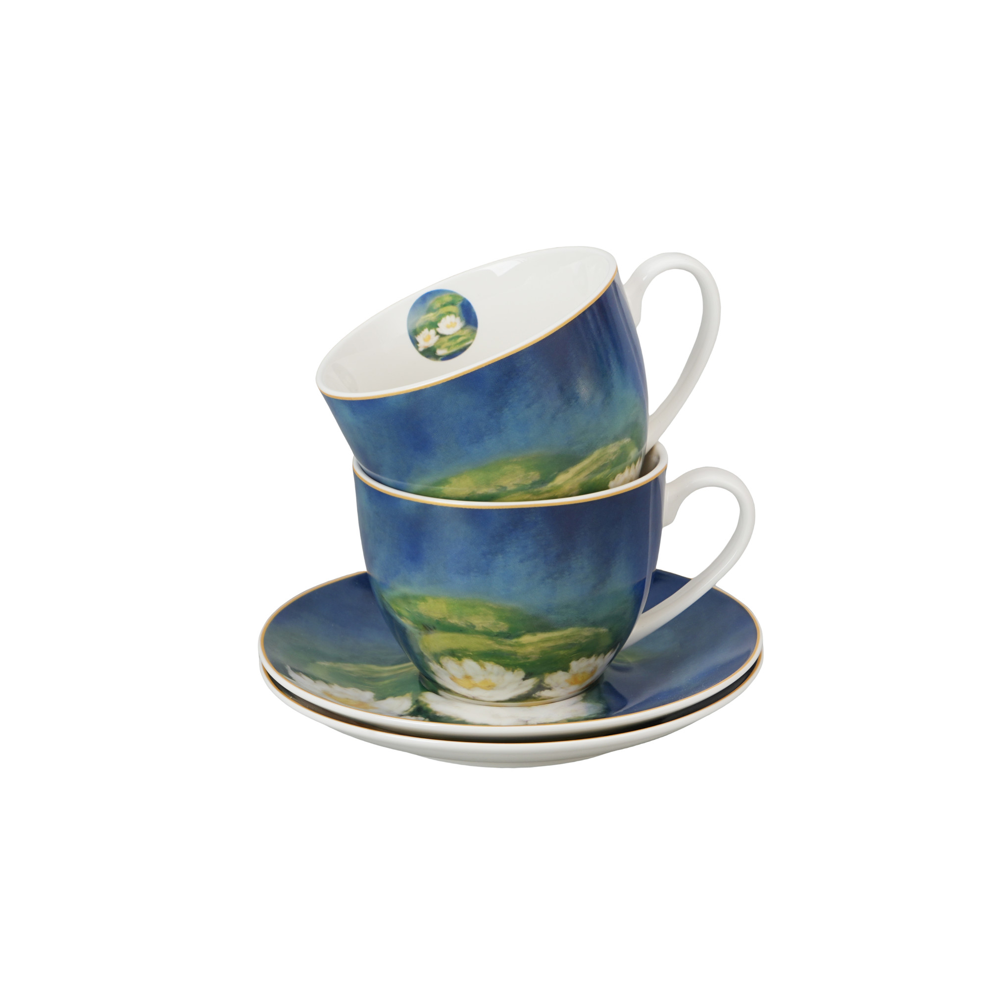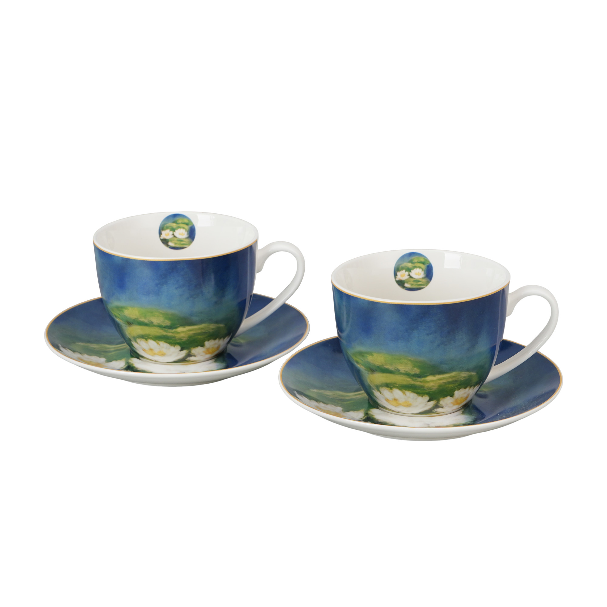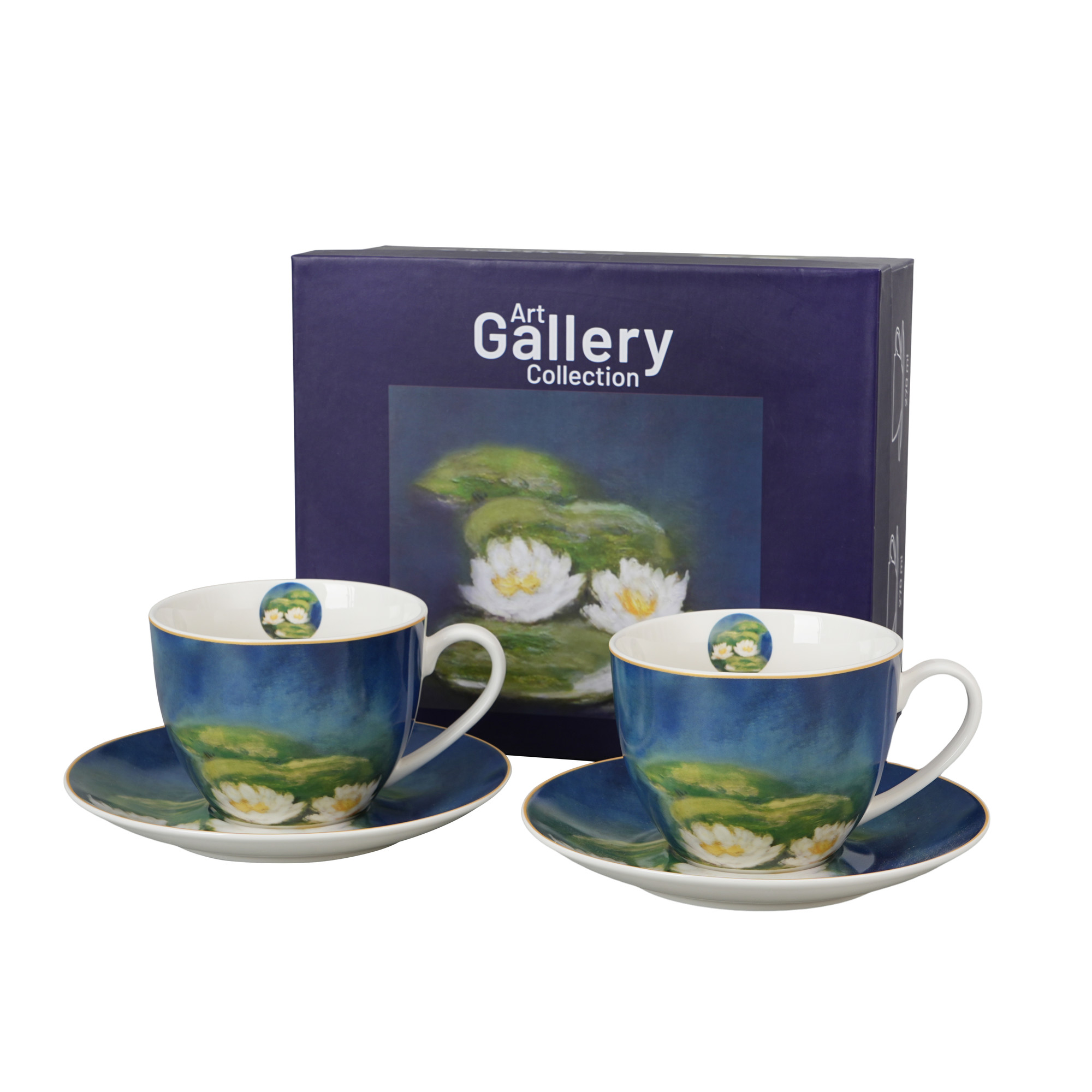 Divu tasīšu ar apakštasītēm komplekts Nénufars inspired by C. Monet no kolekcijas Art Gallery izgatavots no augstas kvalitātes New Bone China porcelāna ar maigi krēmīgu toni, vieglu spīdumu un izturību.