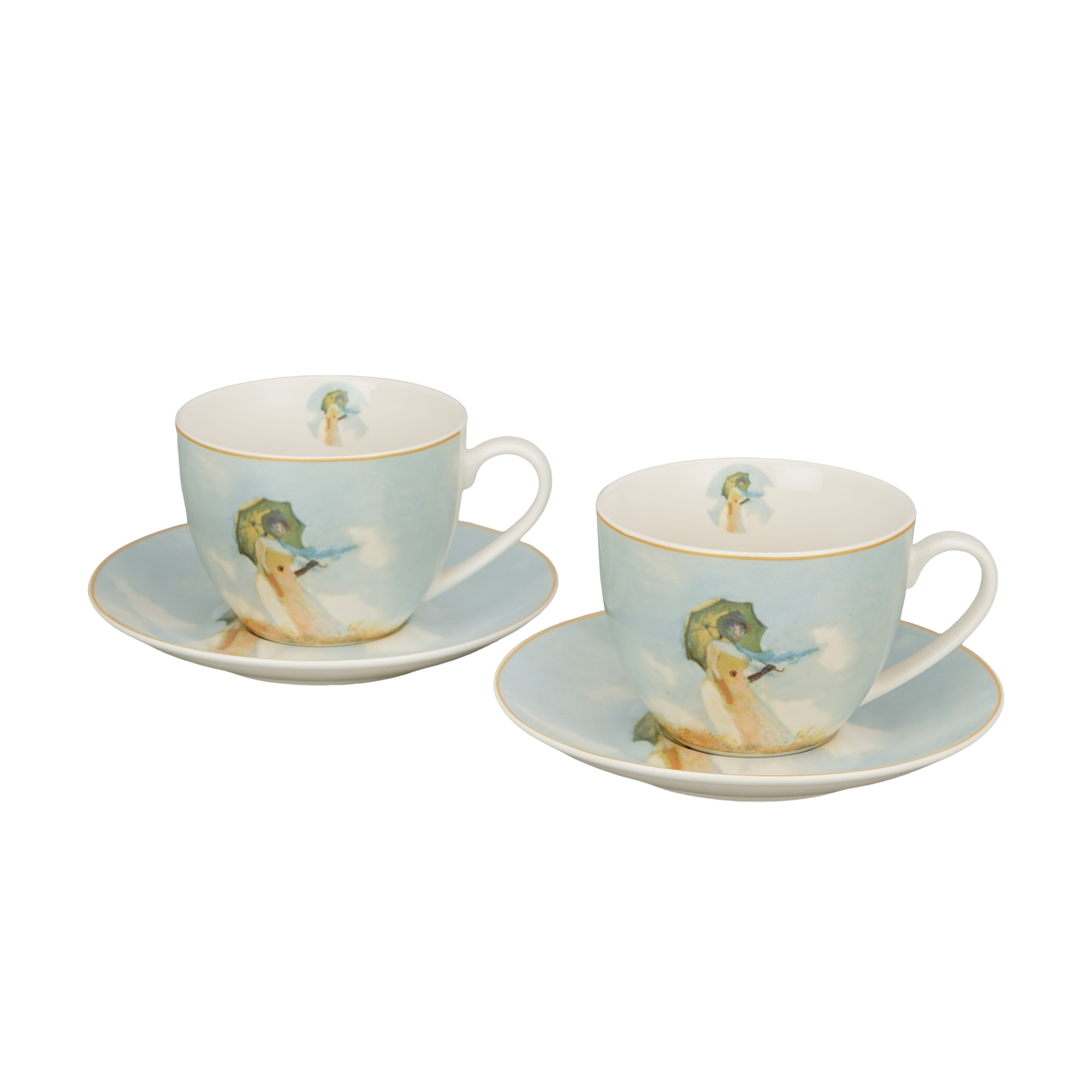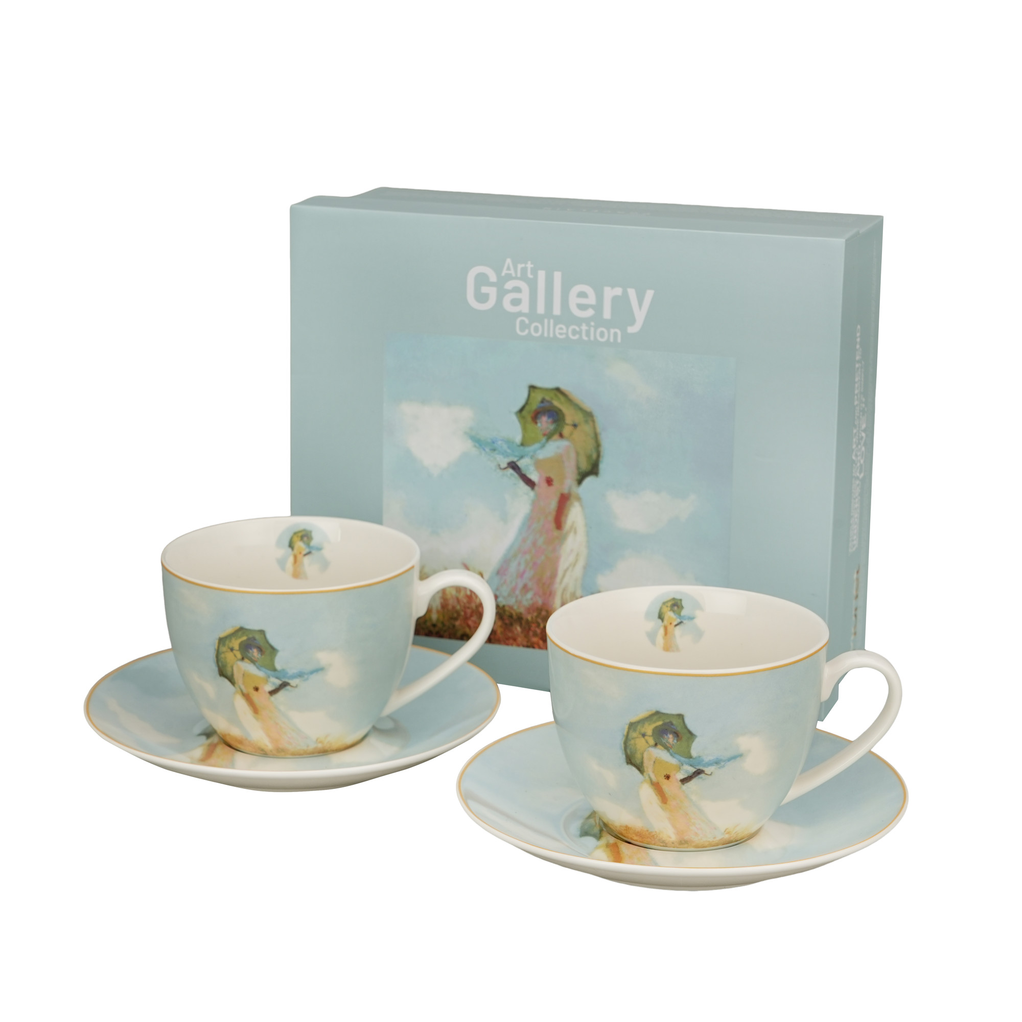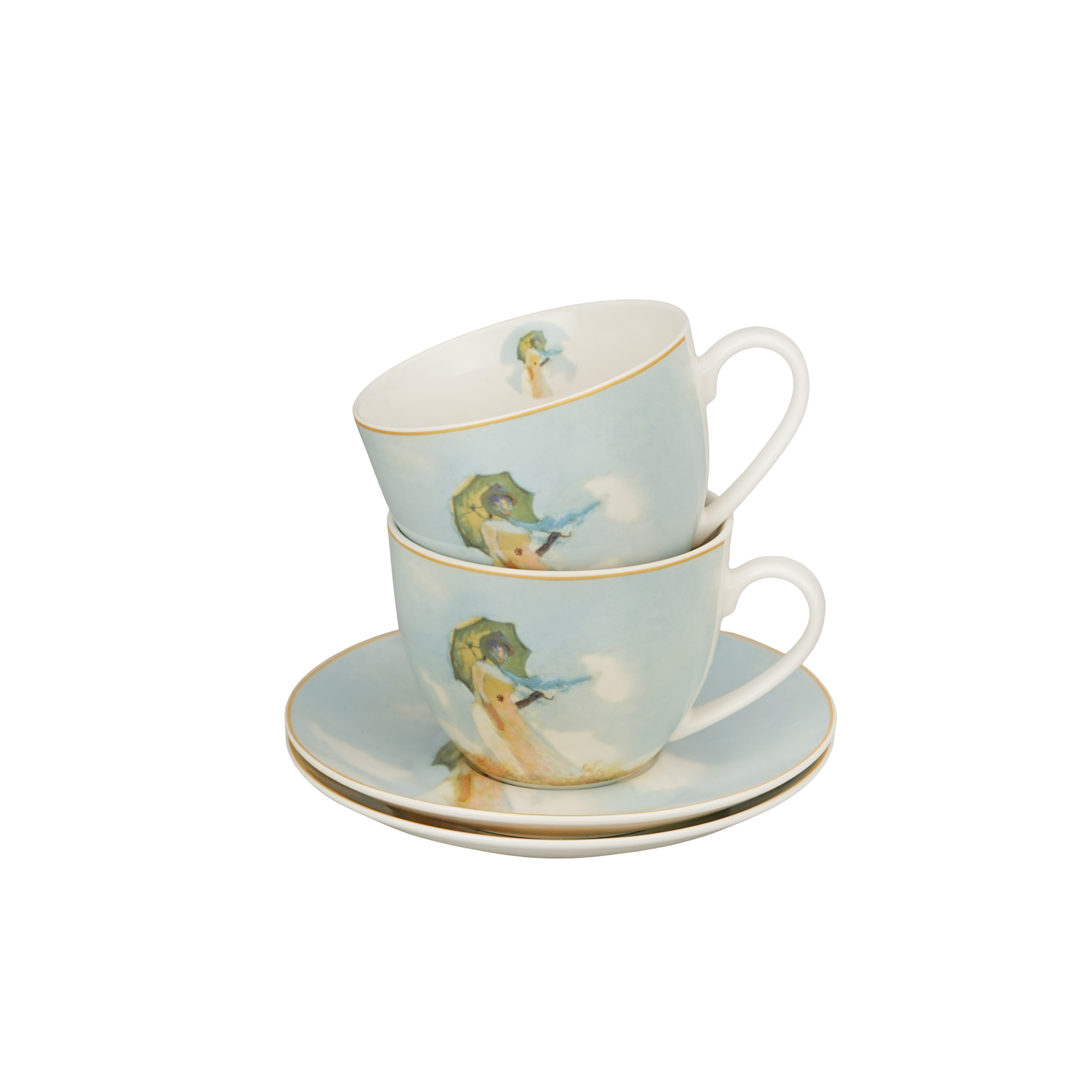 Divu tasīšu ar apakštasītēm komplekts Woman with Parasol inspired by C. Monet no kolekcijas Art Gallery izgatavots no augstas kvalitātes New Bone China porcelāna ar maigi krēmīgu toni, vieglu spīdumu un izturību.