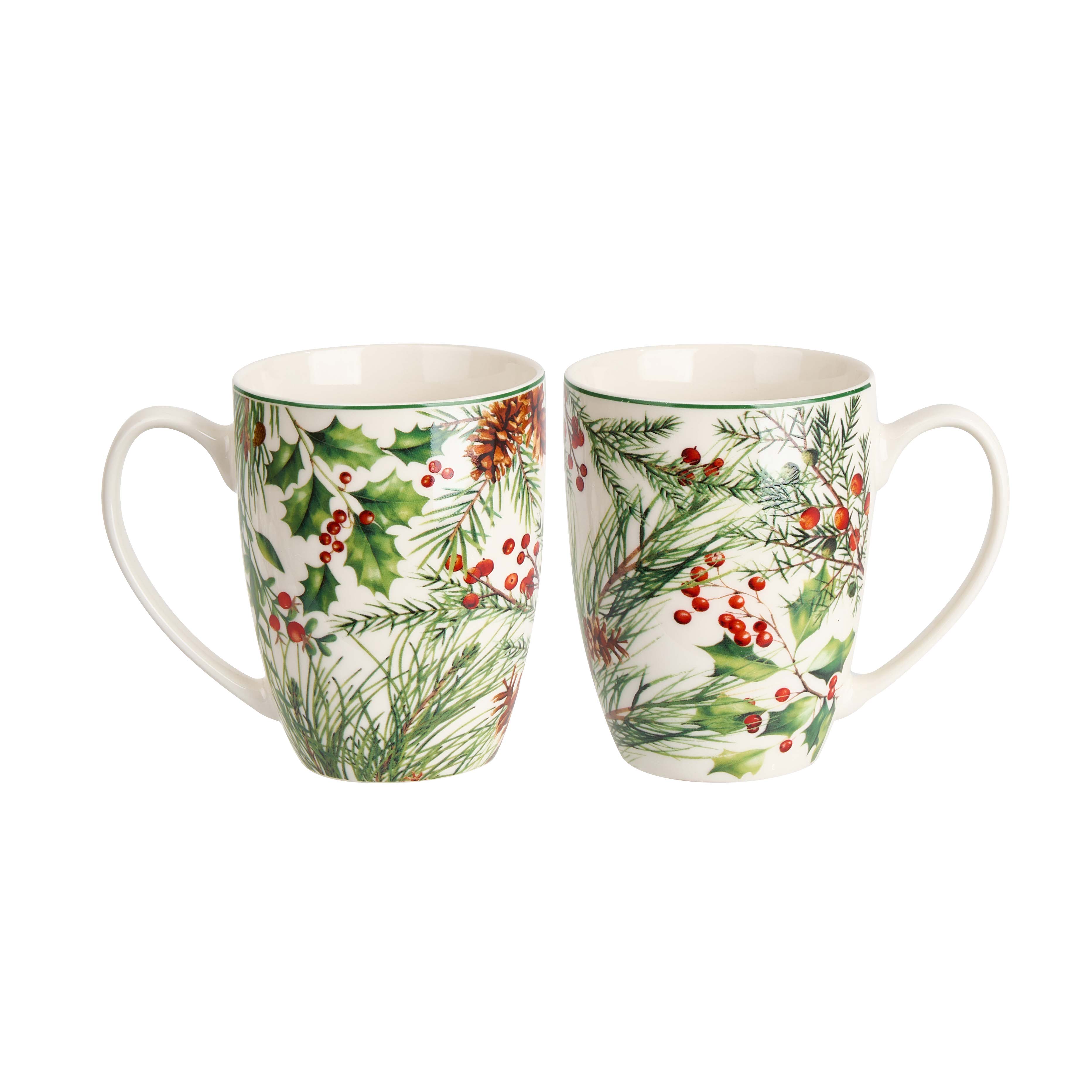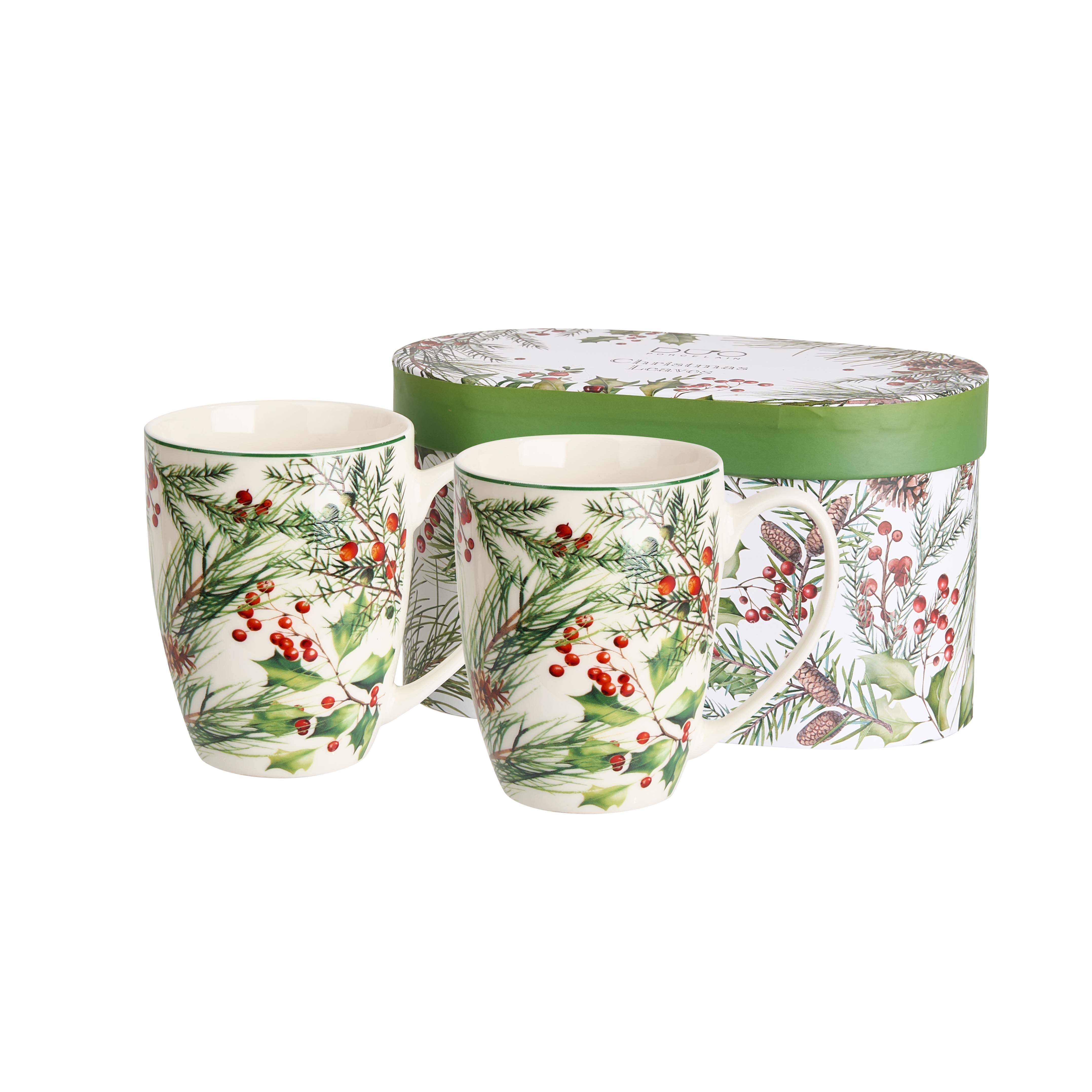 Divu krūžu komplekts Christmas Leaves no Ziemassvētku kolekcijas izgatavots no augstas kvalitātes New Bone China porcelāna, kas izceļas ar elegantu, viegli krēmīgu baltumu, maigu spīdumu un izturību.