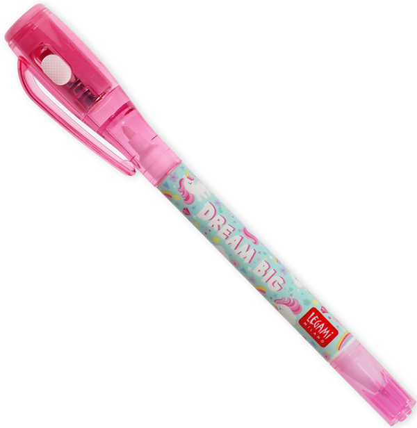 Hidden in plain sight - that’s the secret of Legami’s Upace-themed Invisible Ink Magic Pen. Thanks to the dual tip, you can write in classic blue ink and then, in the blink of an eye, switch to spy mode with the invisible ink. Only by using the special UV light on the lid will what you’ve written become visible.