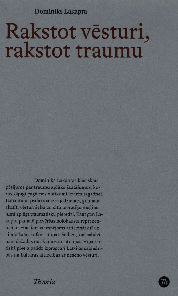 Amerikāņu vēsturnieka un teorētiķa Dominika Lakapras klasiskais pētījums par traumu aplūko jautājumus, kurus sāpīgi pagātnes notikumi izvirza tagadnei. Kaut gan Lakapra pamatā pievēršas holokausta reprezentācijai, viņa idejas iespējams attiecināt arī uz citām katastrofām, it īpaši šodien, kad salīdzinām dažādus notikumus un atmiņas. Viņa kritiskā pieeja palīdz izprast arī Latvijas sabiedrības un kultūras attiecības ar neseno vēsturi. Lakapra savā darbā attīsta plašu terminoloģisko aparātu, ļaujot runāt par traumu dažādos līmeņos, kā arī daudz spriež par traumas pārvarēšanu, kas īpašo svarīga šķiet tieši kolektīvā līmenī, sabiedrībai par pagātni reflektējot caur vēsturi, literatūru, mākslu, muzejiem un pieminekļiem un paralēli cenšoties iztēloties nākotni.