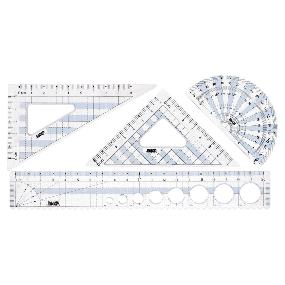 Skolas lineālu komplekts ir precīzs un izturīgs instruments, kas ir ideāli piemērots precīzai mērīšanai un taisnu līniju zīmēšanai. Tā vienkāršais dizains padara to ideāli piemērotu lietošanai skolā un tehniskiem uzdevumiem.