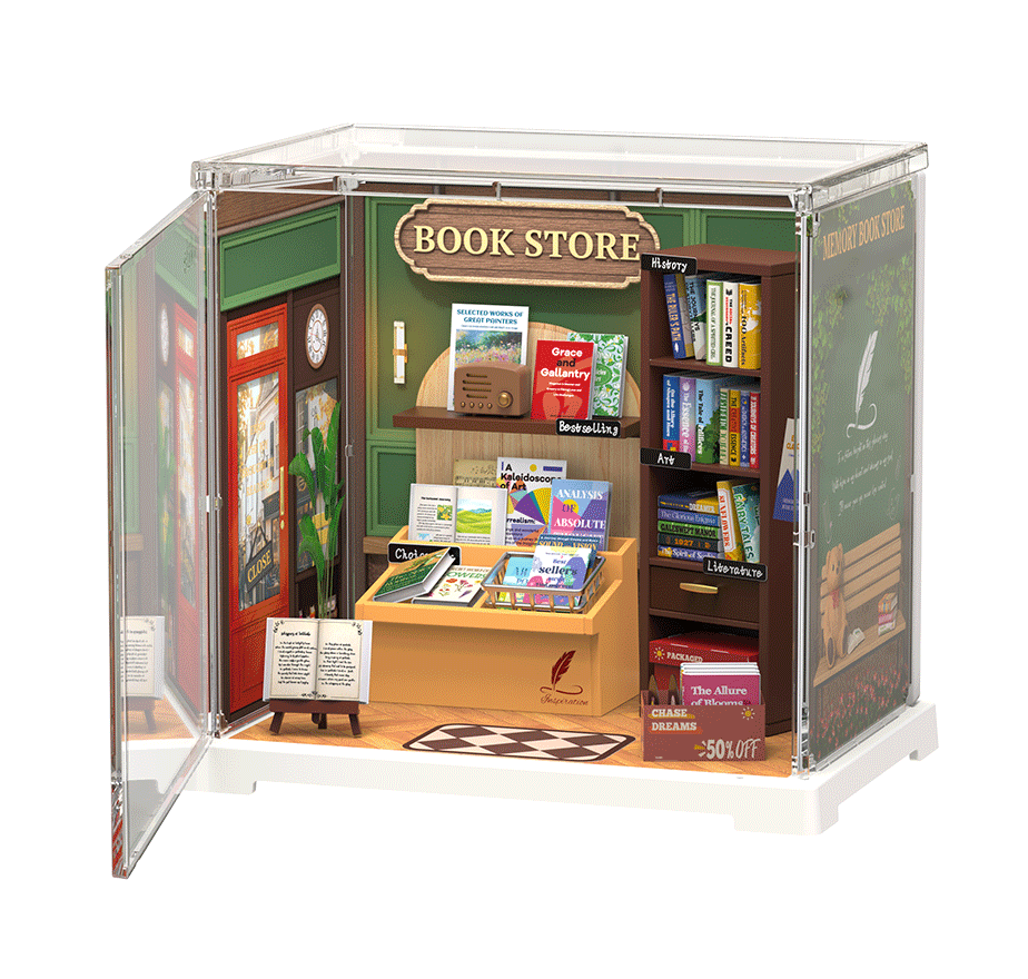 Memory Book Store ir Rolife DIY miniatūras mājas komplekts, kas iedvesmots no laikiem, kad grāmatnīcas bija zināšanu un mākslas centri. Tas atspoguļo laikmetu, kurā literatūra bija emocionāla, informācija – rūpīgi pārbaudīta, bet vizuālais noformējums – cilvēku radīts un pārdomāts.