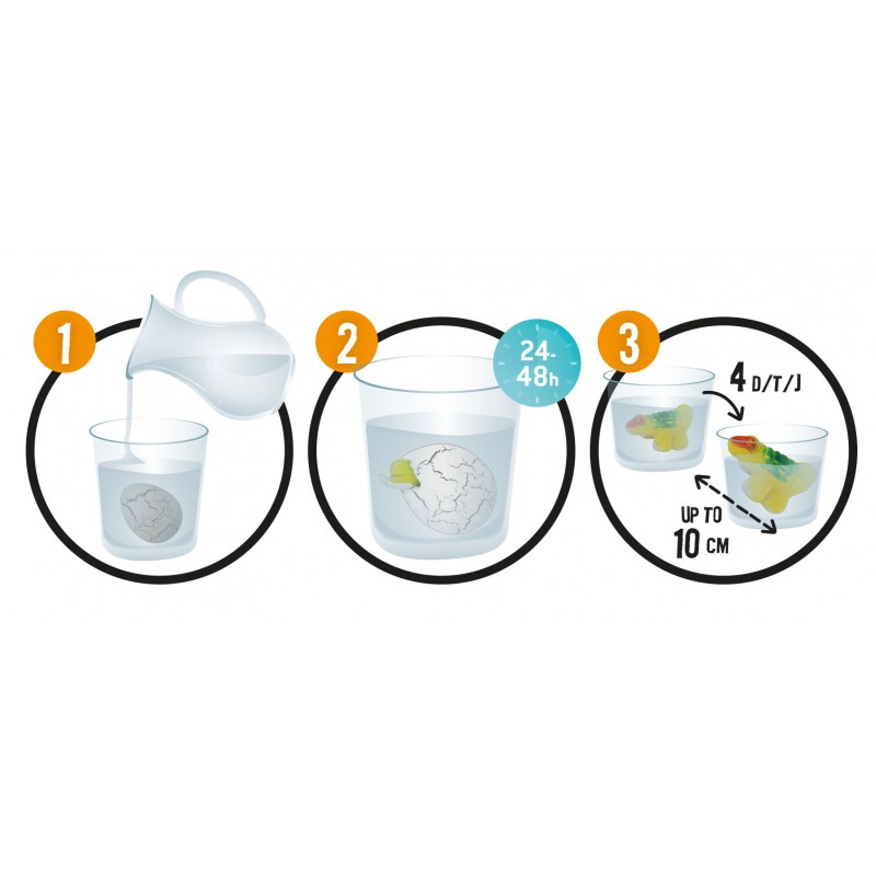 Iegremdējiet olu ūdenī, lai izšķiltos un izaugtu dinozaurs.