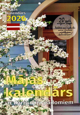 Sienas kalendārs 2026.gadam. Kalendārā atzīmētas mēness fāzes, vārda dienas, atzīmējamās, svētku un atceres dienas. Atvērumā redzams izvēlētais mēnesis, iepriekšējais un nākošais mēnesis.