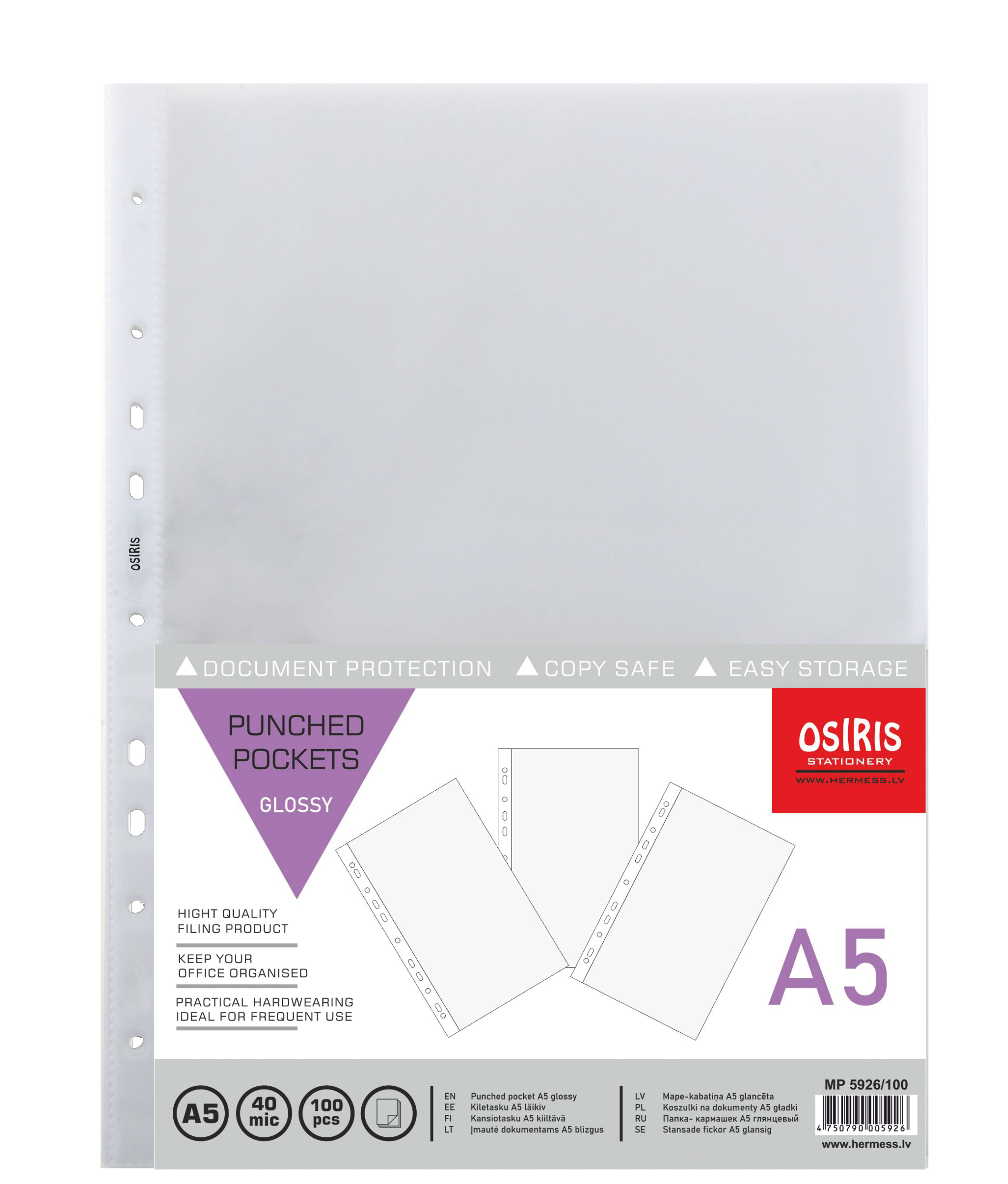 Mape kabatiņa A5, glancēta, 40 mkr, 100 gab., Osiris