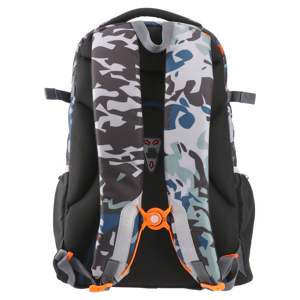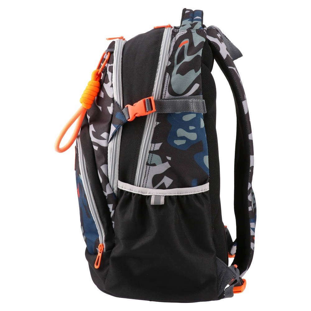Brīvi stāvošs, trīskārši apmalots, ūdensnecaurlaidīgs audums, augstas kvalitātes poliesters, atstarojošas drošības siksnas, regulējamas ergonomiskas plecu siksnas, mīksts rokturis pārnēsāšanai, viegls un izturīgs, sānu kabatas, ventilējoša, ergonomiska muguras daļa.