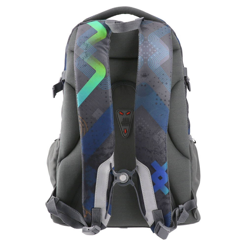 Brīvi stāvošs, trīskārši apmalots, ūdensnecaurlaidīgs audums, augstas kvalitātes poliesters, atstarojošas drošības siksnas, regulējamas ergonomiskas plecu siksnas, mīksts rokturis pārnēsāšanai, viegls un izturīgs, sānu kabatas, ventilējoša, ergonomiska muguras daļa.