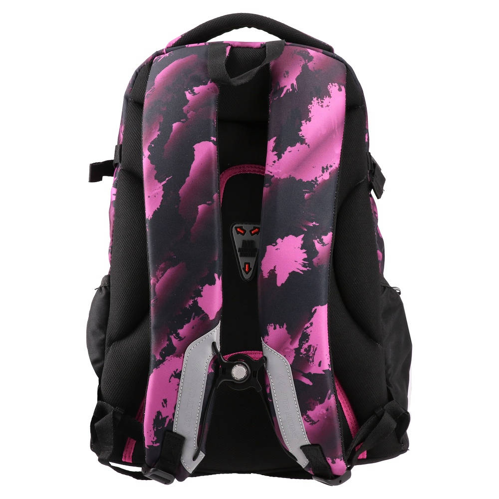 Brīvi stāvošs, trīskārši apmalots, ūdensnecaurlaidīgs audums, augstas kvalitātes poliesters, atstarojošas drošības siksnas, regulējamas ergonomiskas plecu siksnas, mīksts rokturis pārnēsāšanai, viegls un izturīgs, sānu kabatas, ventilējoša, ergonomiska muguras daļa.