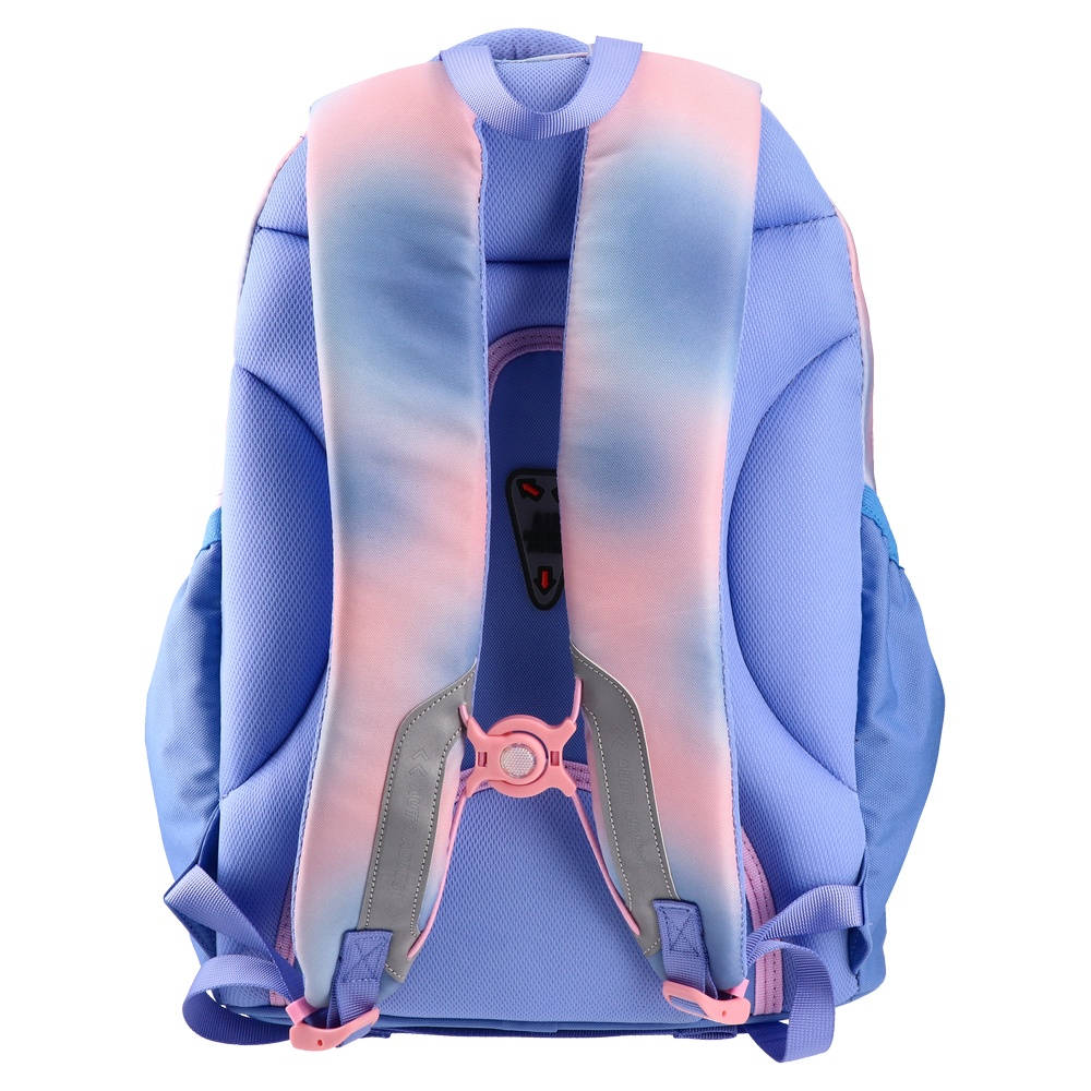 Brīvi stāvošs, trīskārši apmalots, ūdensnecaurlaidīgs audums, augstas kvalitātes poliesters, atstarojošas drošības siksnas, regulējamas ergonomiskas plecu siksnas, mīksts rokturis pārnēsāšanai, viegls un izturīgs, sānu kabatas, ventilējoša, ergonomiska muguras daļa.