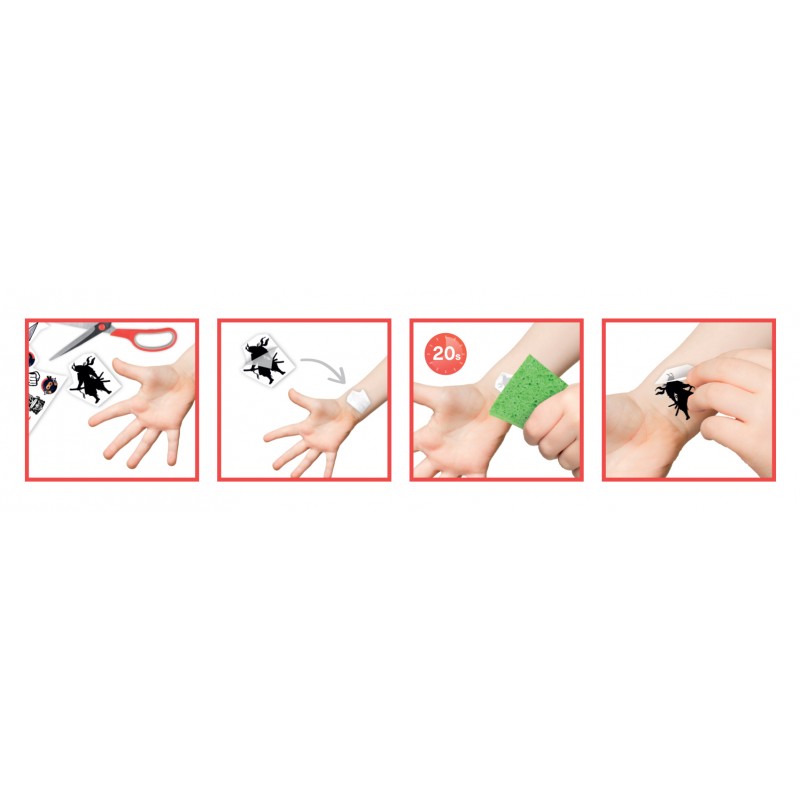 Brīdinājums: Tikai bērniem no 6 gadu vecuma. BRĪDINĀJUMS! Nav piemērots bērniem līdz 36 mēnešu vecumam mazu detaļu dēļ, kuras var norīt. Aizrīšanās risks. BRĪDINĀJUMS! Nelietot ap acīm. JUTĪGAS ĀDAS BRĪDINĀJUMS: Ja pamanāt jebkāda veida apsārtumu vai ādas reakciju, nekavējoties noņemiet tetovējumu.