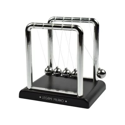 Legami Ņūtona šūpulis ir klasisks vintage priekšmets jūsu rakstāmgaldam. Demonstrējot Ņūtona kustības likumus, šis iecienītais priekšmets sastāv no piecām metāla bumbiņām, kas karājas pie diviem vadiem. Kad jūs atraujat pirmo bumbiņu un ļaujat tai nokrist, lai trāpītu pārējām, bumbiņa pretējā pusē kustēsies ar tādu pašu impulsu kā pirmā. Tiek uzskatīts, ka nepārtrauktās kustības vērošana un bumbiņu triecienu skaņas dzirdēšana, pateicoties to hipnotiskām īpašībām, stimulē radošumu, koncentrēšanos un relaksāciju, tāpēc jūs acumirklī tiksiet cauri šim darāmo lietu sarakstam. Ja vien varat... atraut... acis... prom...