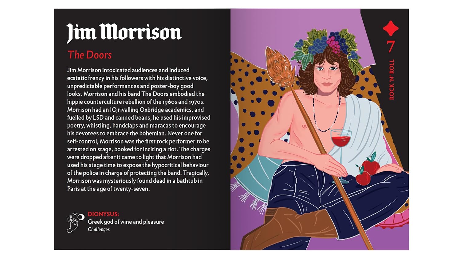 Iedvesmojošs kāršu komplekts, kurā rokmūzikas leģendas pārtapušas dievībās no sengrieķu, ķeltu, skandināvu un acteku mitoloģijas. 54 ilustrācijas apvieno mūziku, mītus un zīlēšanas mākslu, radot spilgtu un radošu pieredzi.