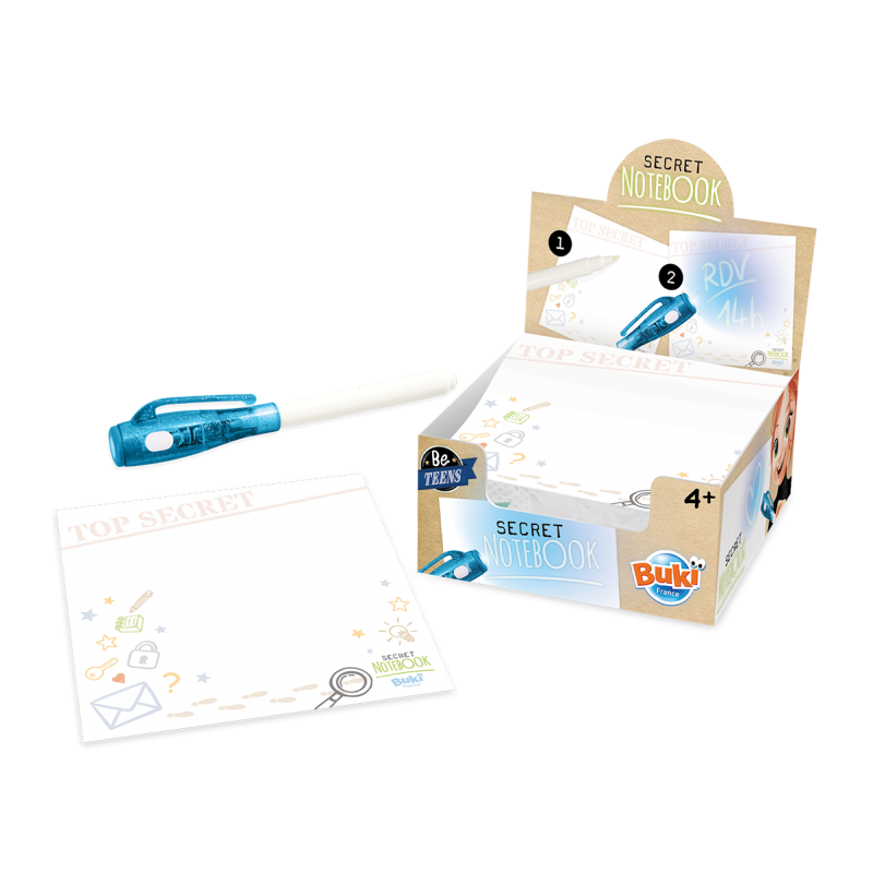 Komplektā: viena 300 lapu pašlīmējoša piezīmju blociņa un neredzama tintes pildspalva ar UV lampu.