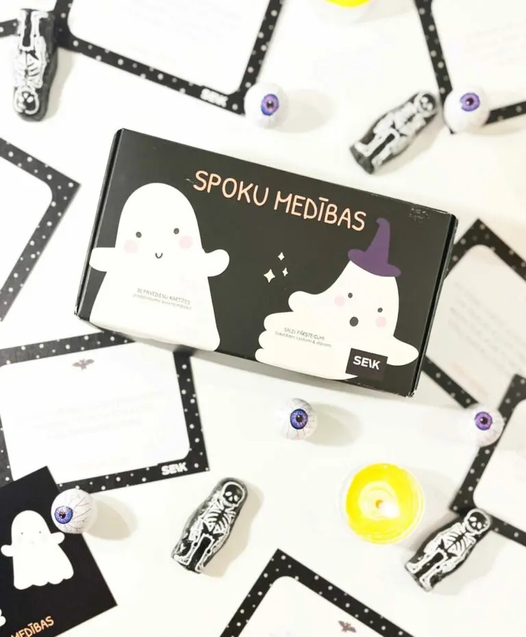 SEIK ģimene ir redzējusi, ka daži Halovīna spoki lido apkārt un šur un tur slēpj mazus gardumus. Esam dzirdējuši, ka ir bērni, kuri labprāt nogaršotu spoku paslēptos saldumus. Tagad jūs varat pārbaudīt, kurš ir labākais spoku mednieks un kurš atradīs visvairāk gardumu. Šajā mazajā komplektā atradīsiet visu nepieciešamo jautrām Halovīna gardumu medībām. Un pats svarīgākais – šajā paciņā iepakots prieks!