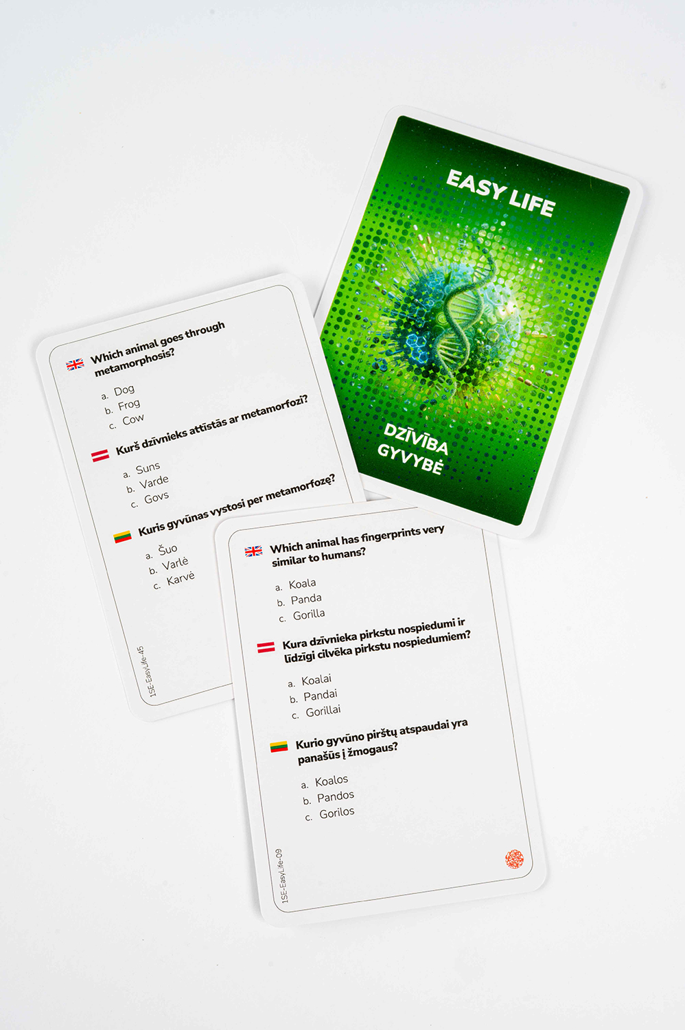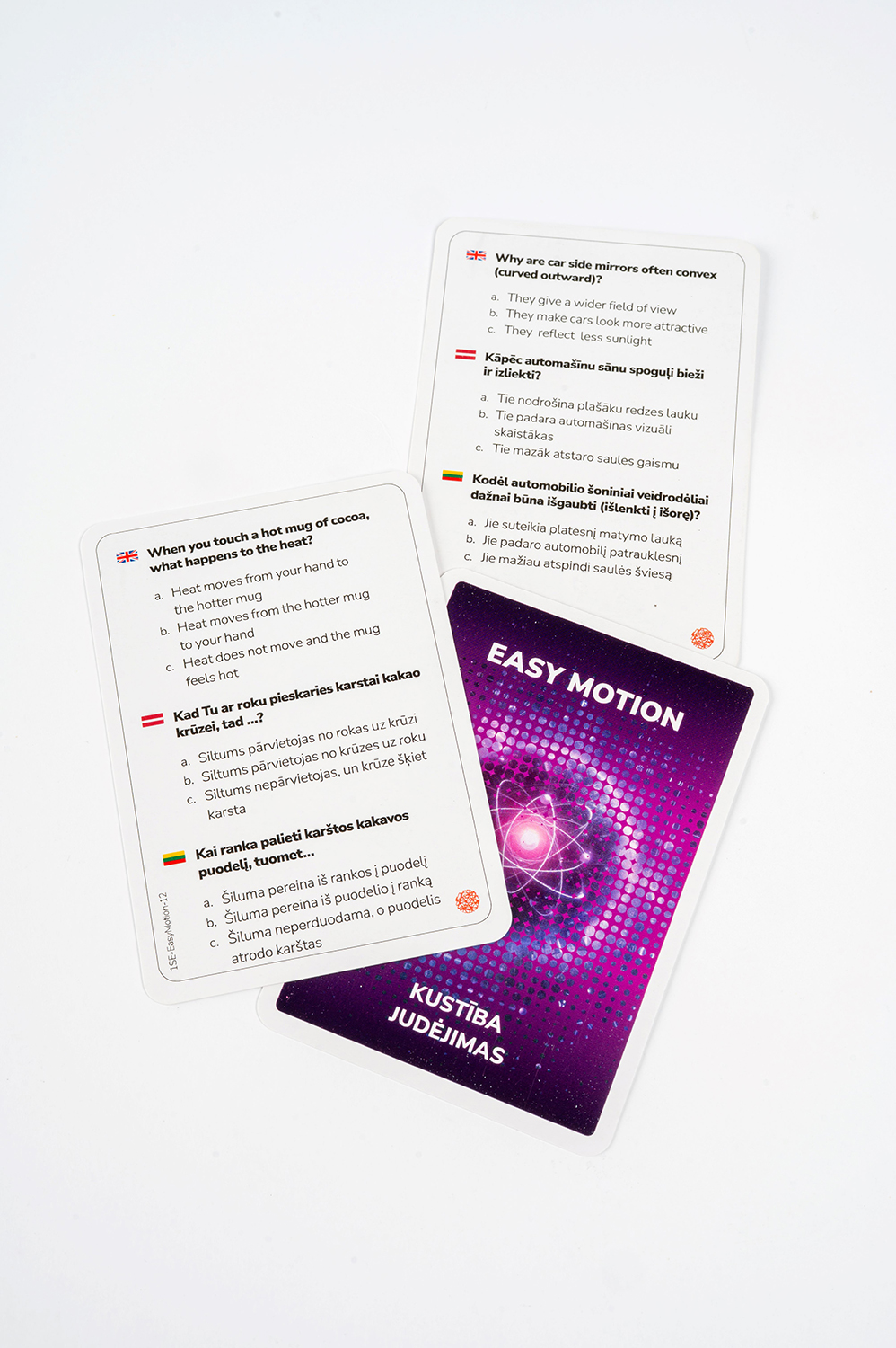 • 228 viktorīnas kārtis, dažādās STEM tēmās (48 kārtis katrā kavā)