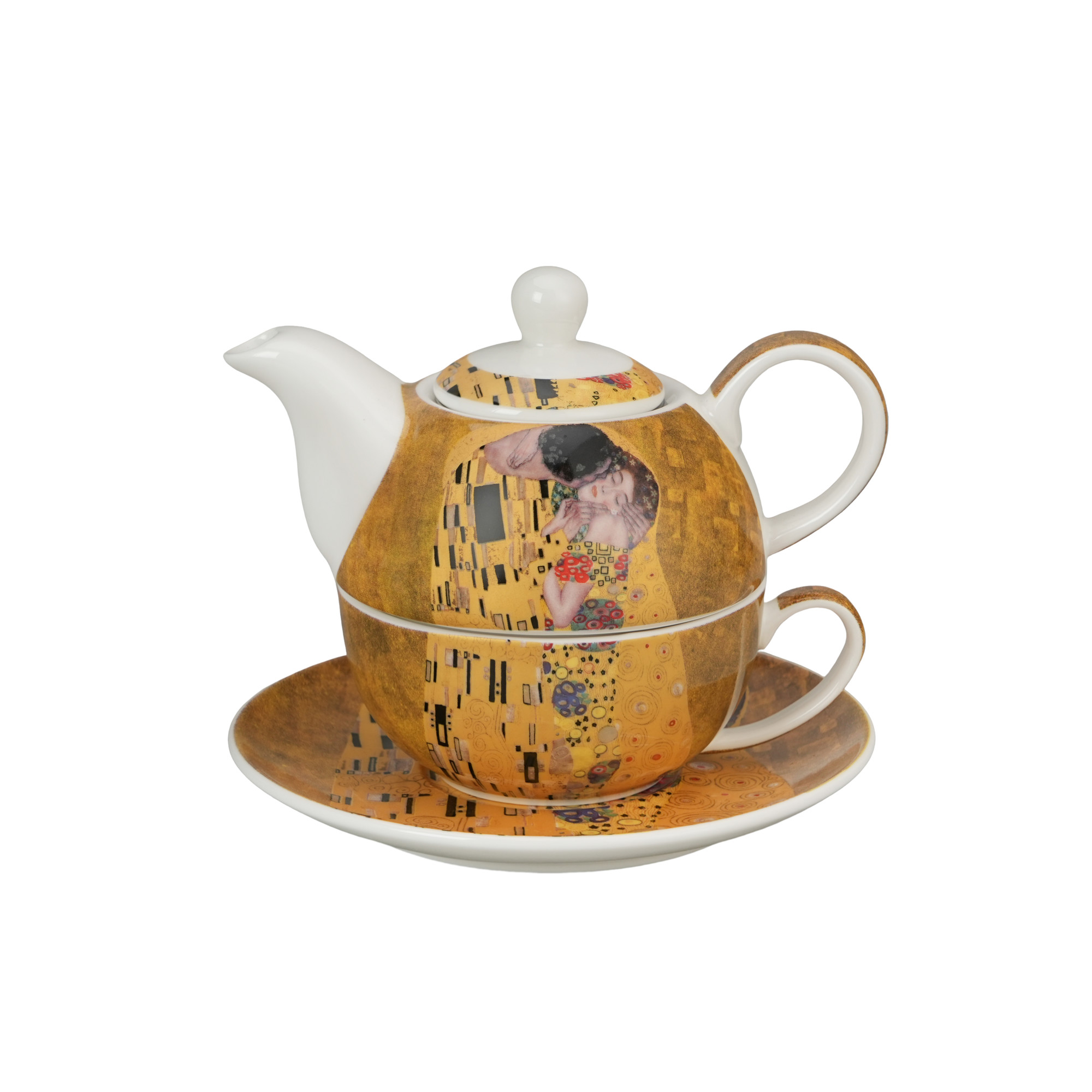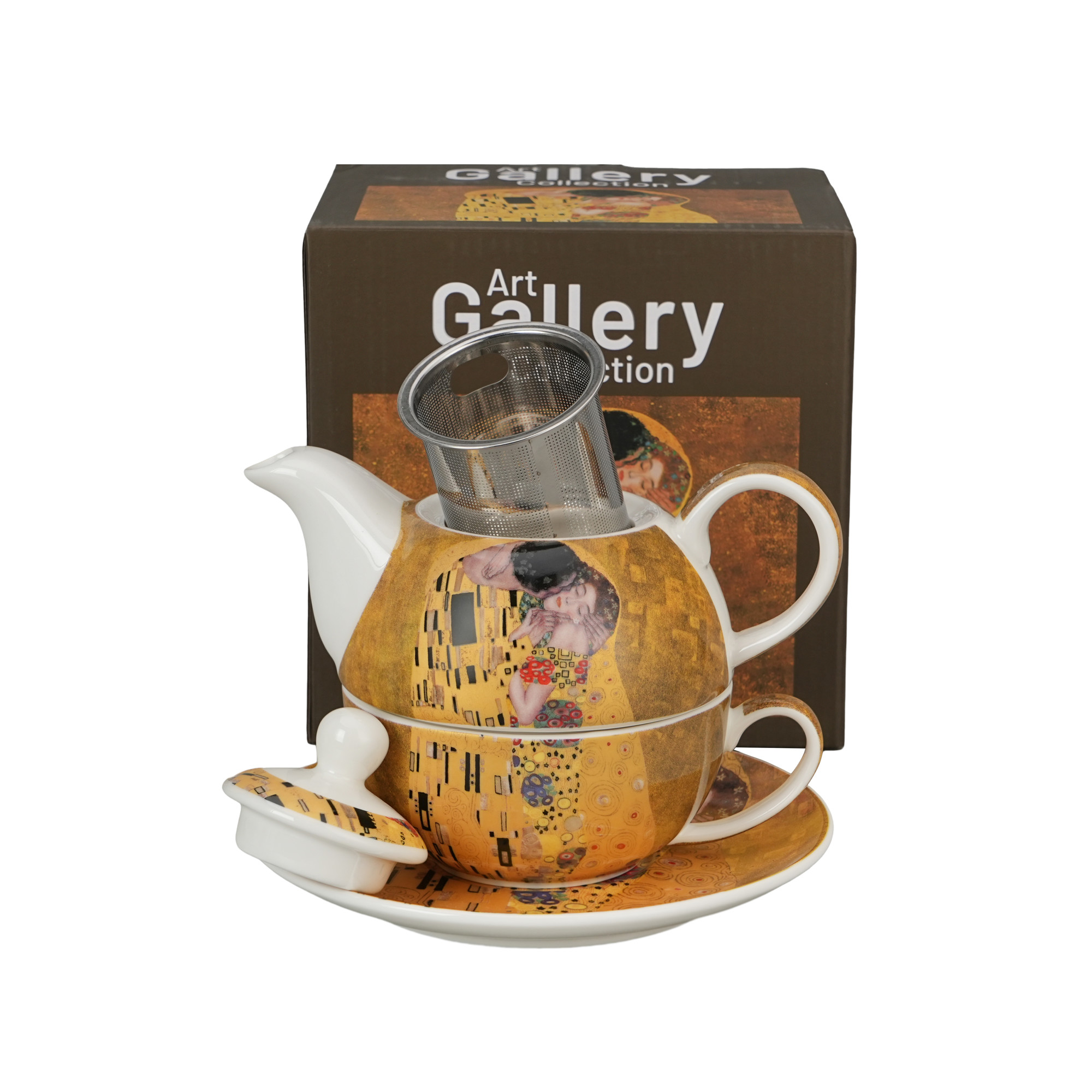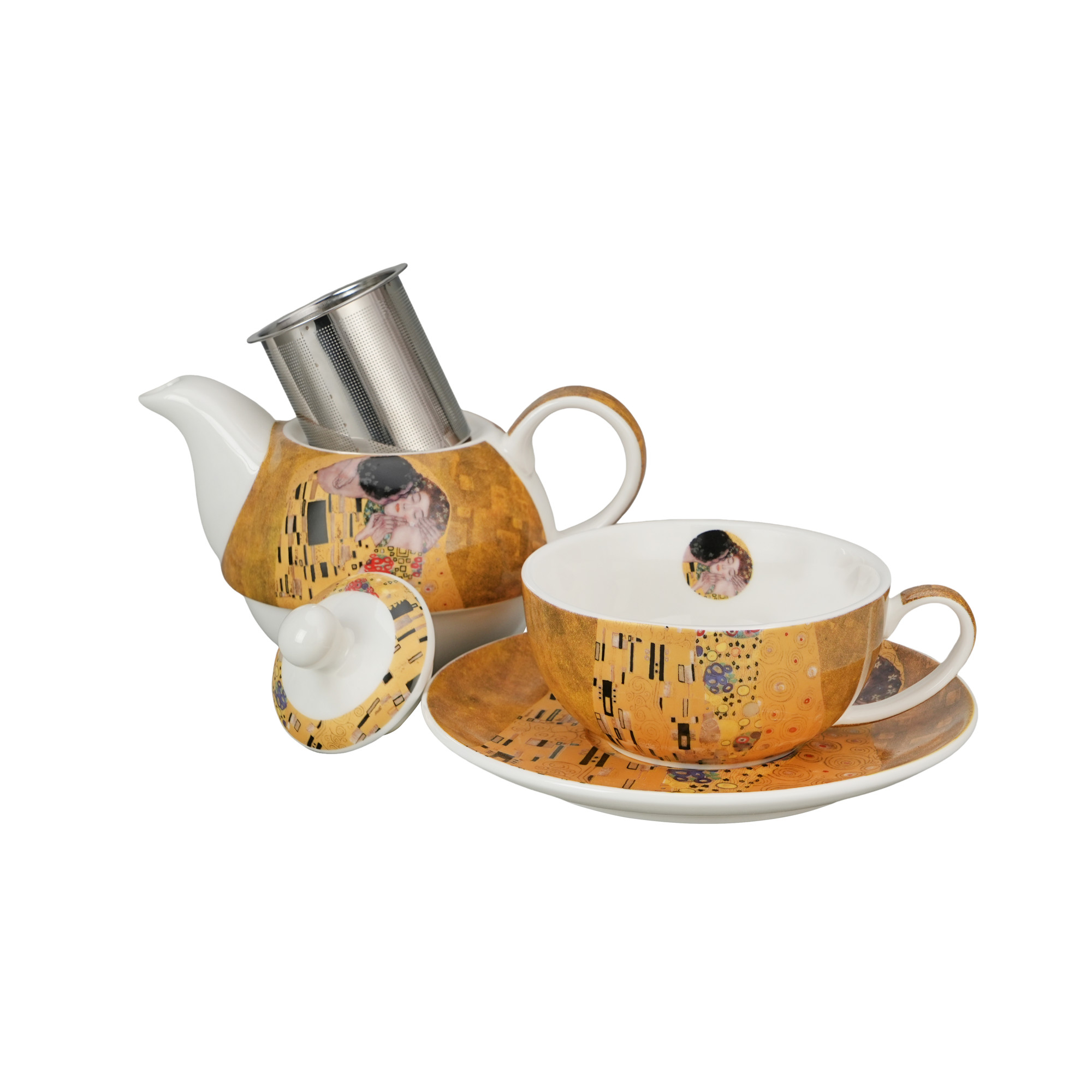 “The Kiss Classic” ir porcelāna tējas komplekts ar tasīti, tējkannu un sietiņu, izgatavots no izturīga New Bone China porcelāna ar krēmīgi baltu toni un maigu spīdumu.
