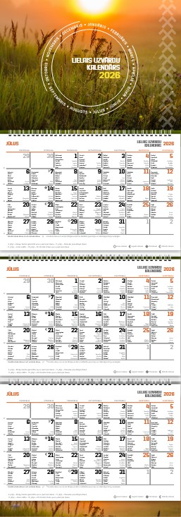 Kalendārs ar trīs atsevišķu lapu komplektiem, kuras ir viegli noplēšamas un ļauj ieskatīties trīs mēnešu pārskatā - iepriekšējā, kārtējā un nākamajā.